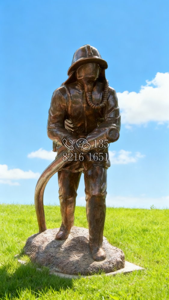 玻璃鋼仿銅消防員雕塑 (1)